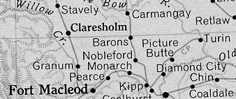 The Canadian Pacific Railway purchased the present townsite of Barons in early 1909.