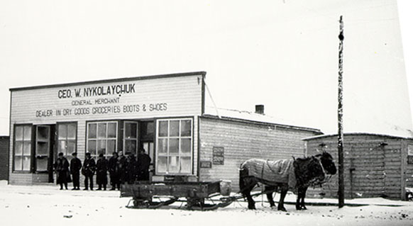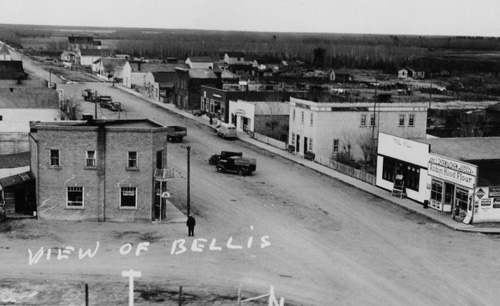 The hamlet's name derives from the Ukrainian: Bel lis "white woods", referring to the local birch and poplars. The Post office opened on April 15, 1914.
